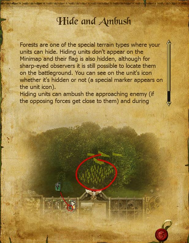 Ambushは「キャンペーンマップ上の部隊コマンド」と、「戦場での森を利用した効果」と、「部隊スキル(Passiveスキル)」と、3種類存在するので、混同しないよう。