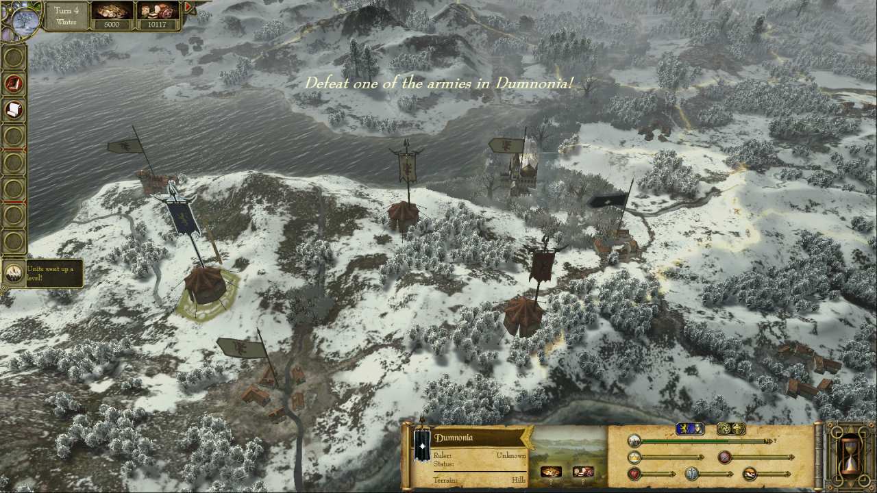 とりあえず、春に初陣、夏にCornwall制覇し、秋にDumnoniaの中程まで進軍(移動ポイントが足りず、上の画面のあたりで止まるはずだ)してきたが、いよいよ初冬の到来である。