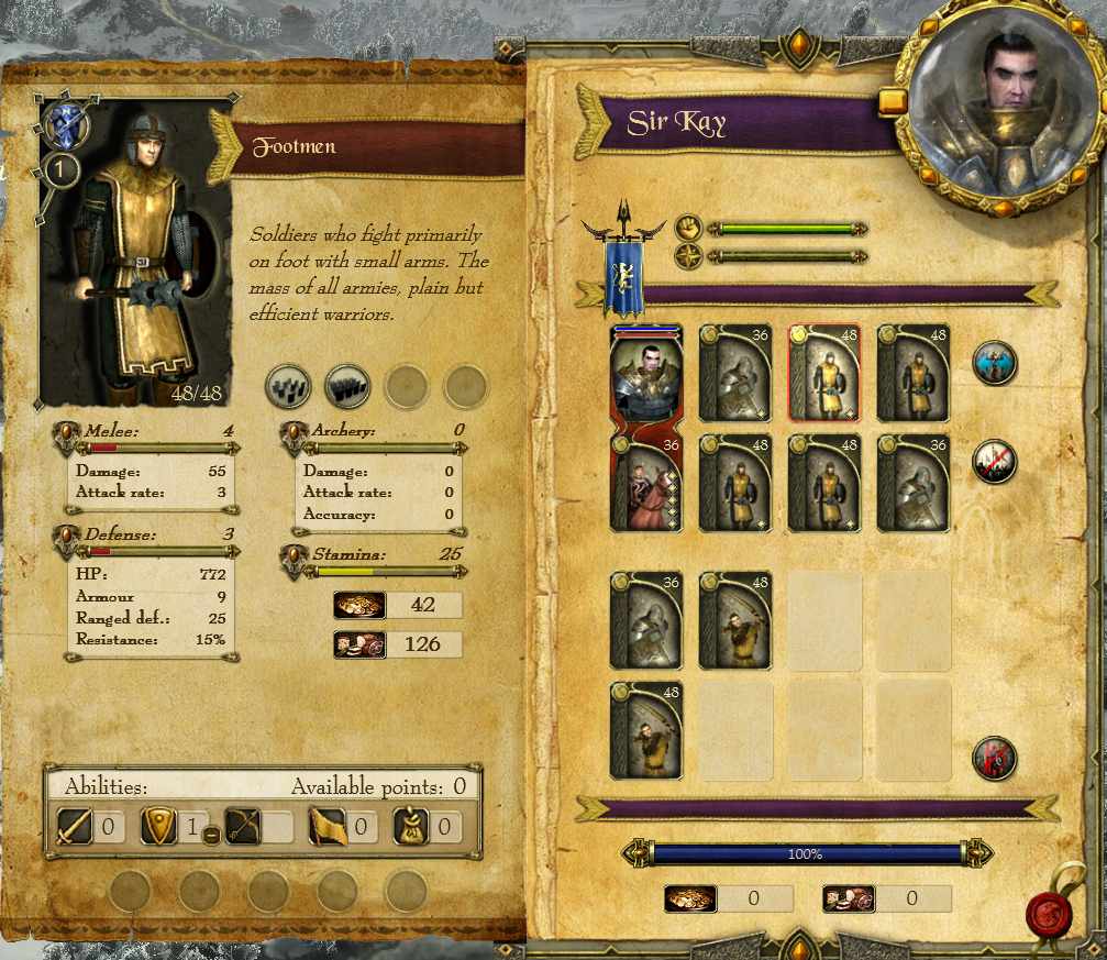 経験値が溜まっていれば、画面左に「Units went up a level!」のアナウンスが出るはずだ。当該アナウンスアイコンをクリックするか、テント化しているSir Kayの部隊をダブルクリックすると、