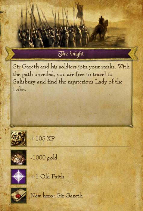選択肢は二つ、Garethの部下に対し金1000を払うか、払わないか。払わなければSir Garethも兵士も置いていくことになる。ここは当然「払う」。