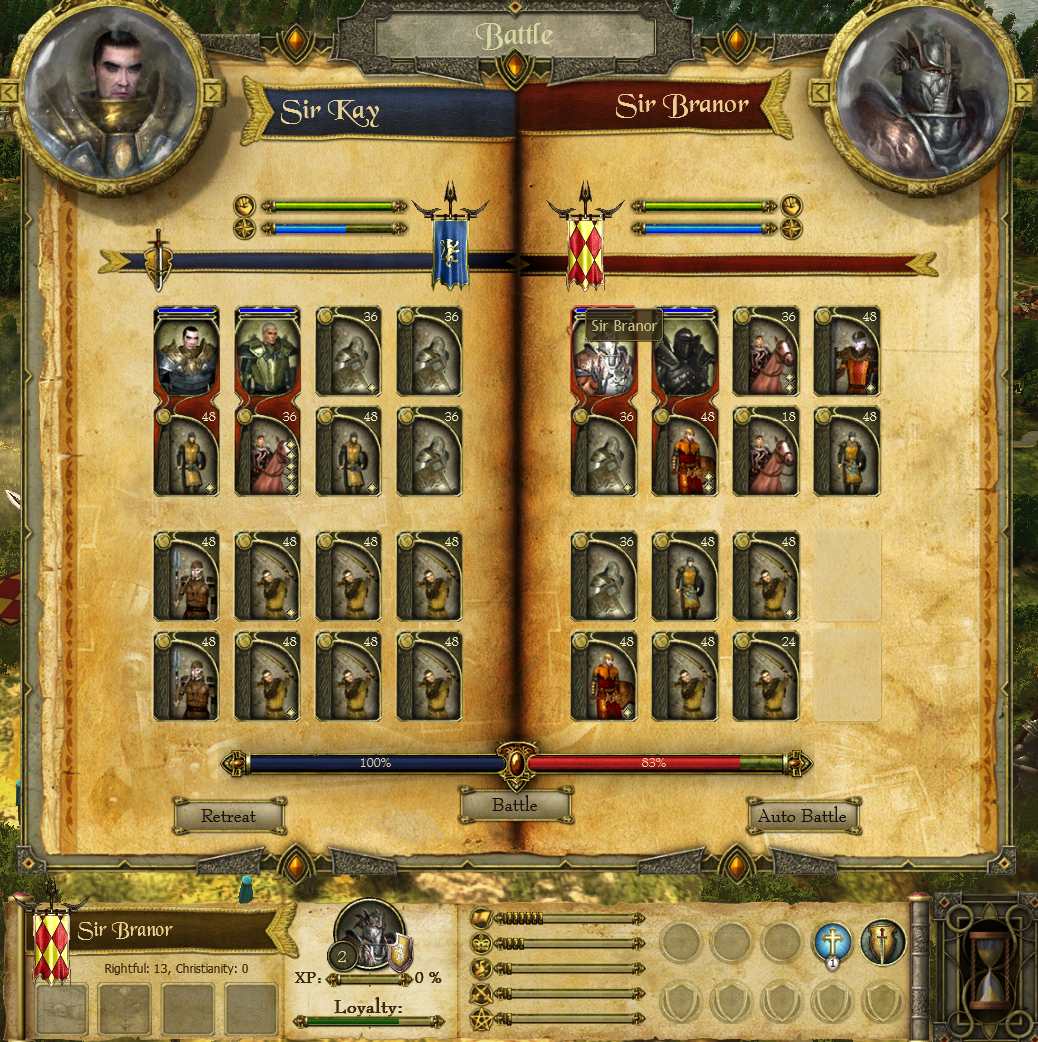 そして、空いたKayの部隊に、Garethを移動させると、Garethとバンドルされている兵士とセットで、Kay麾下に入ることになる。